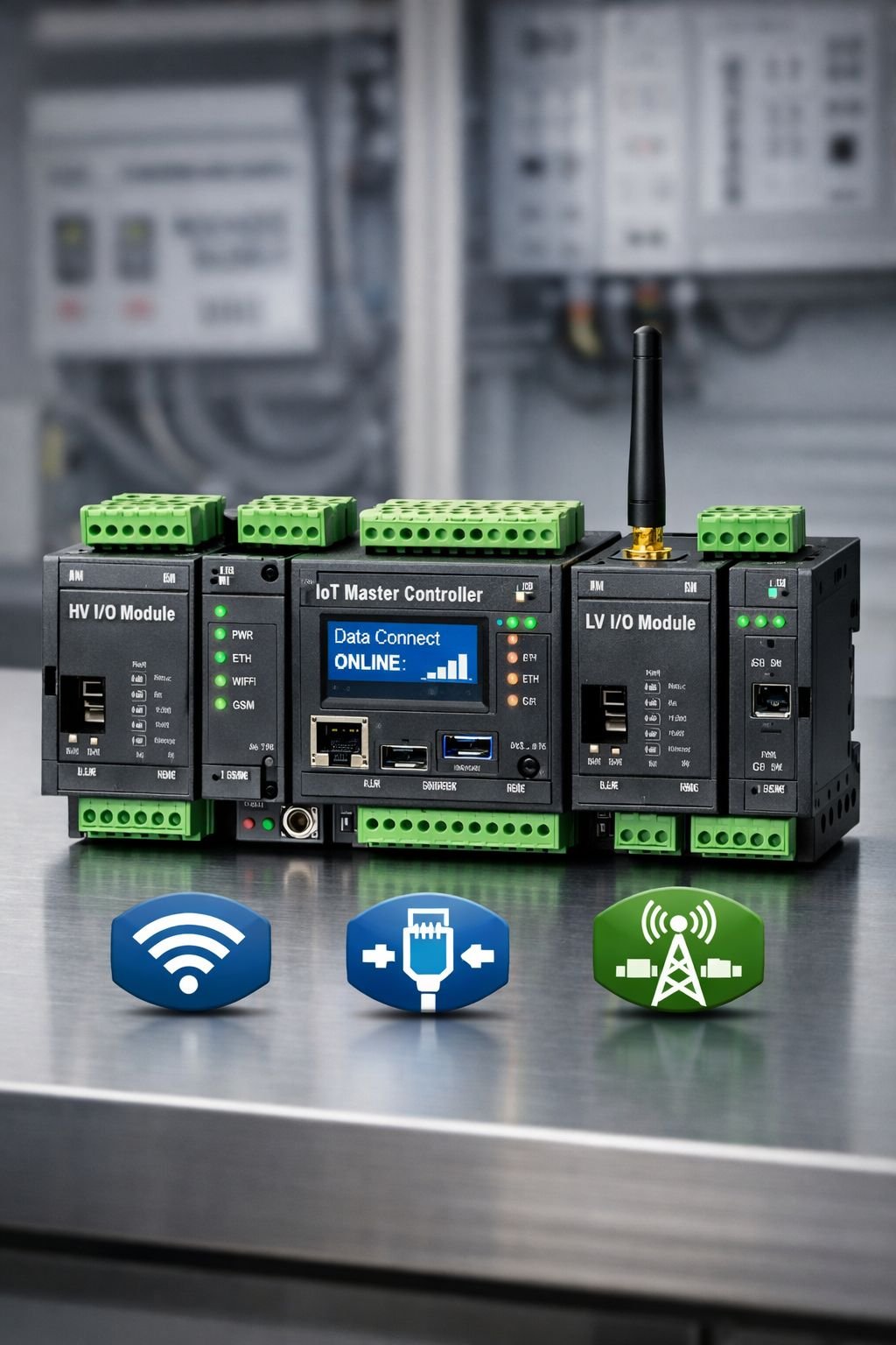 Modular, vendor-agnostic IoT field controllers for HV and LV applications — Wi-Fi, Ethernet, GSM/GPRS connectivity.