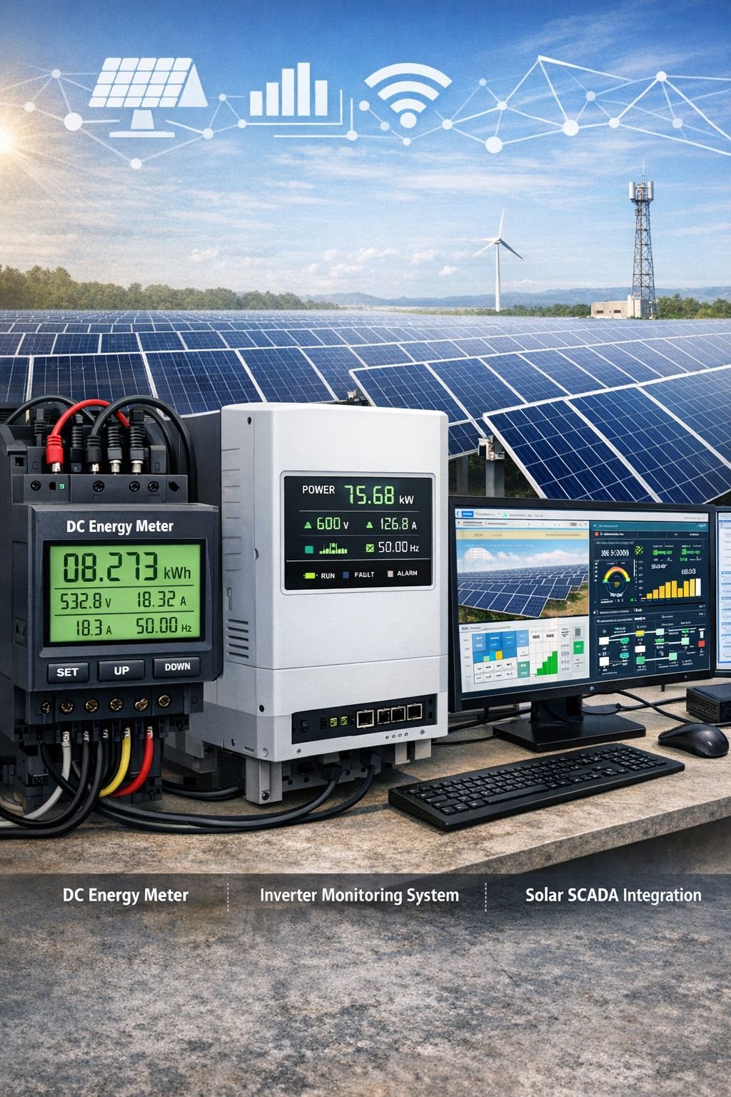 Solar energy measurement and monitoring instruments — DC energy meters, inverter monitoring, and solar SCADA integration.