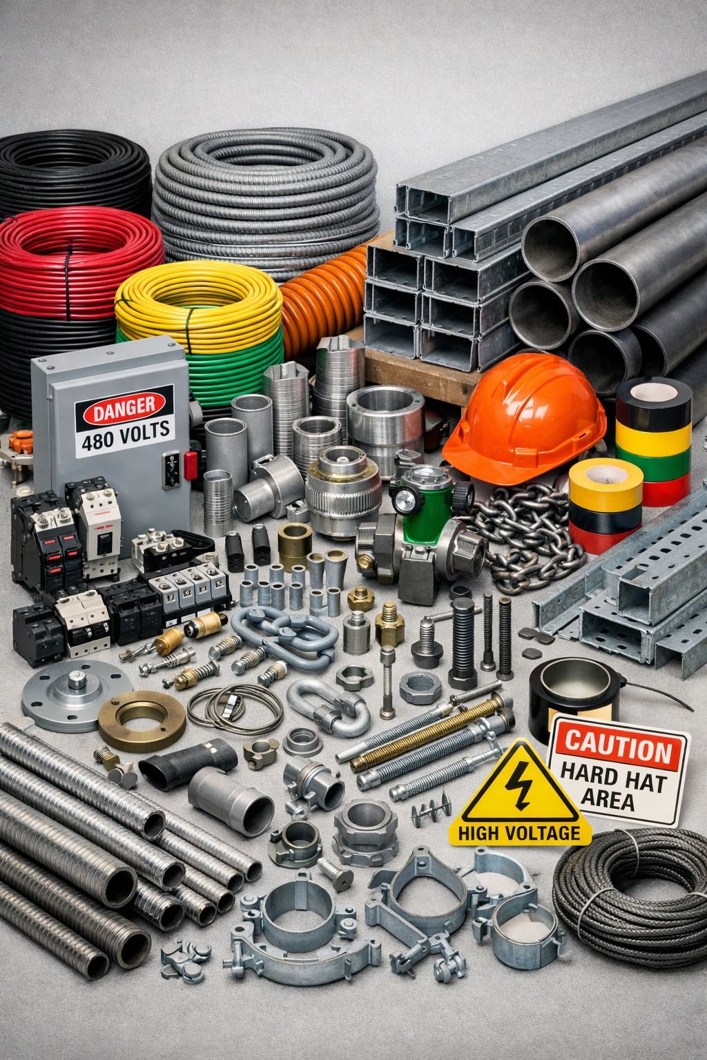 Electrical and mechanical construction materials for industrial and infrastructure projects.