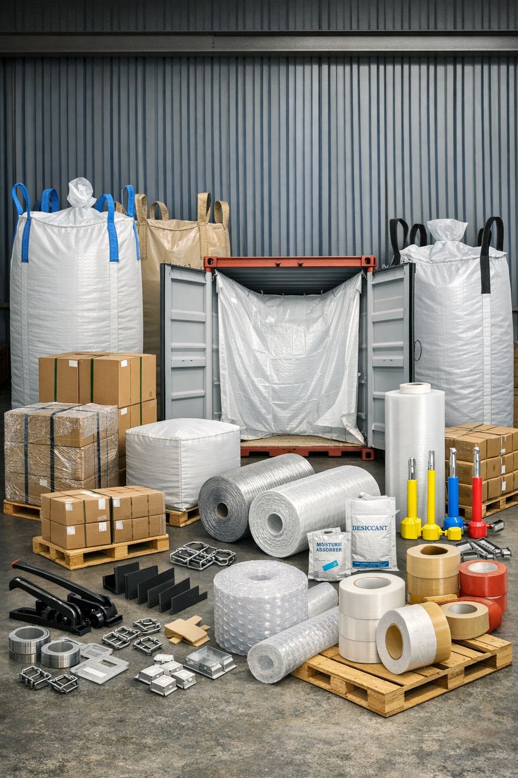 Industrial jumbo bags (FIBC), container liner bags, container seals, and packaging accessories for export and logistics.